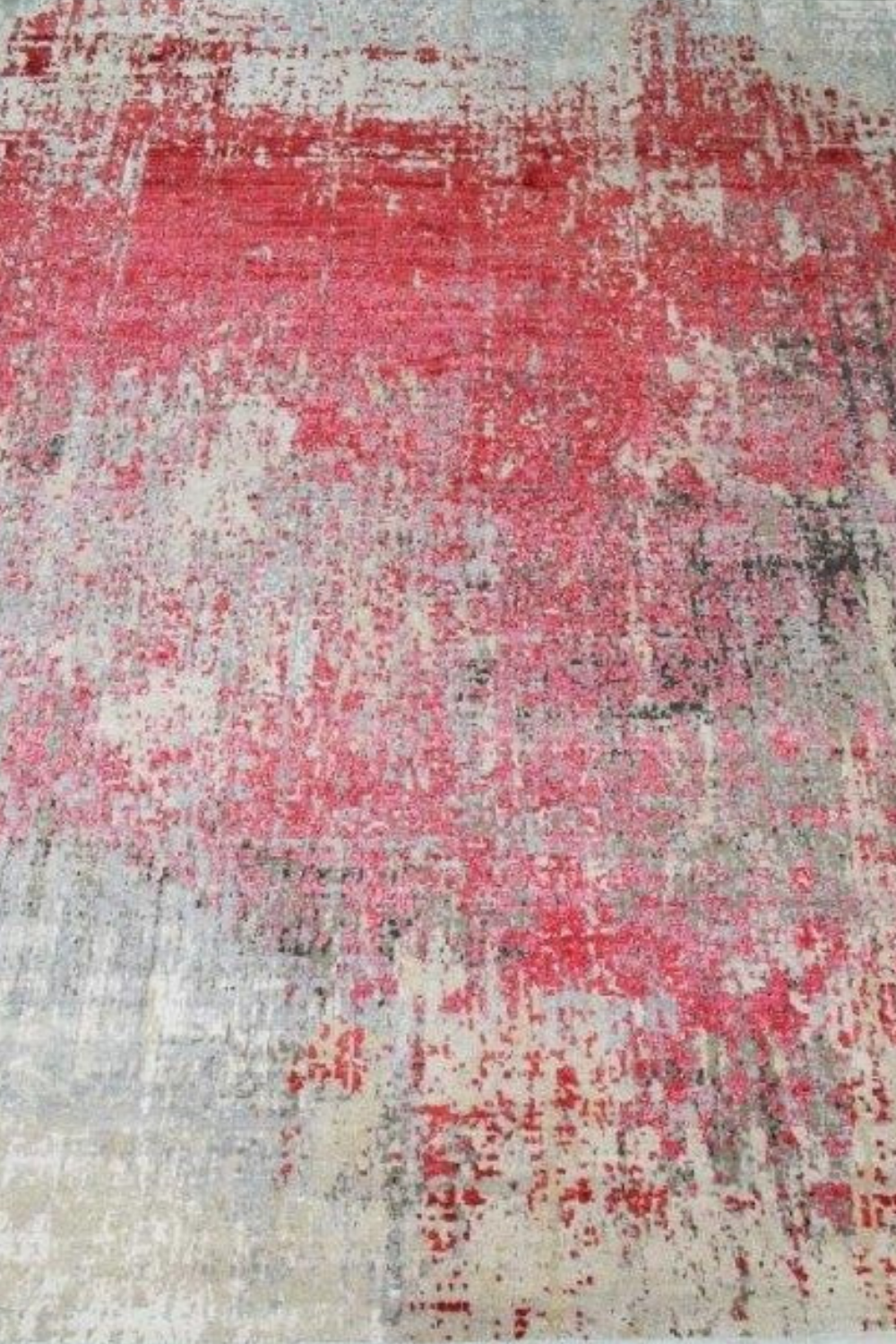 Hand-knotted carpet made of pure new wool and natural silk, hand-carved in relief.