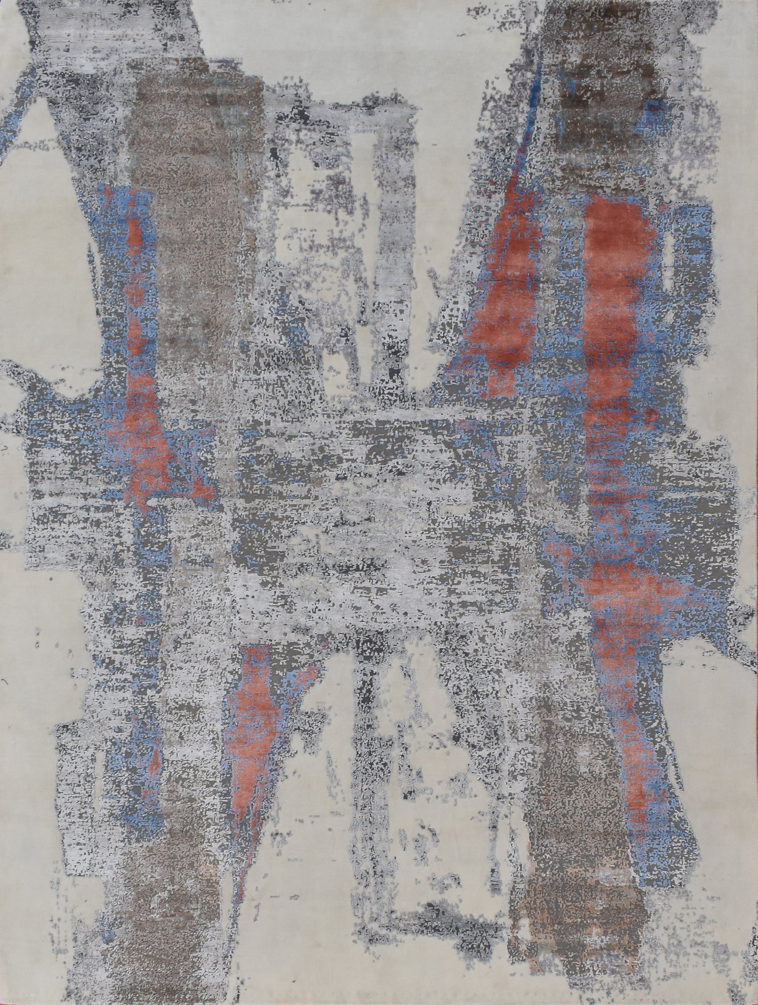 Hand-knotted Indian carpet made of pure new wool and bamboo silk, hand-carved in relief.