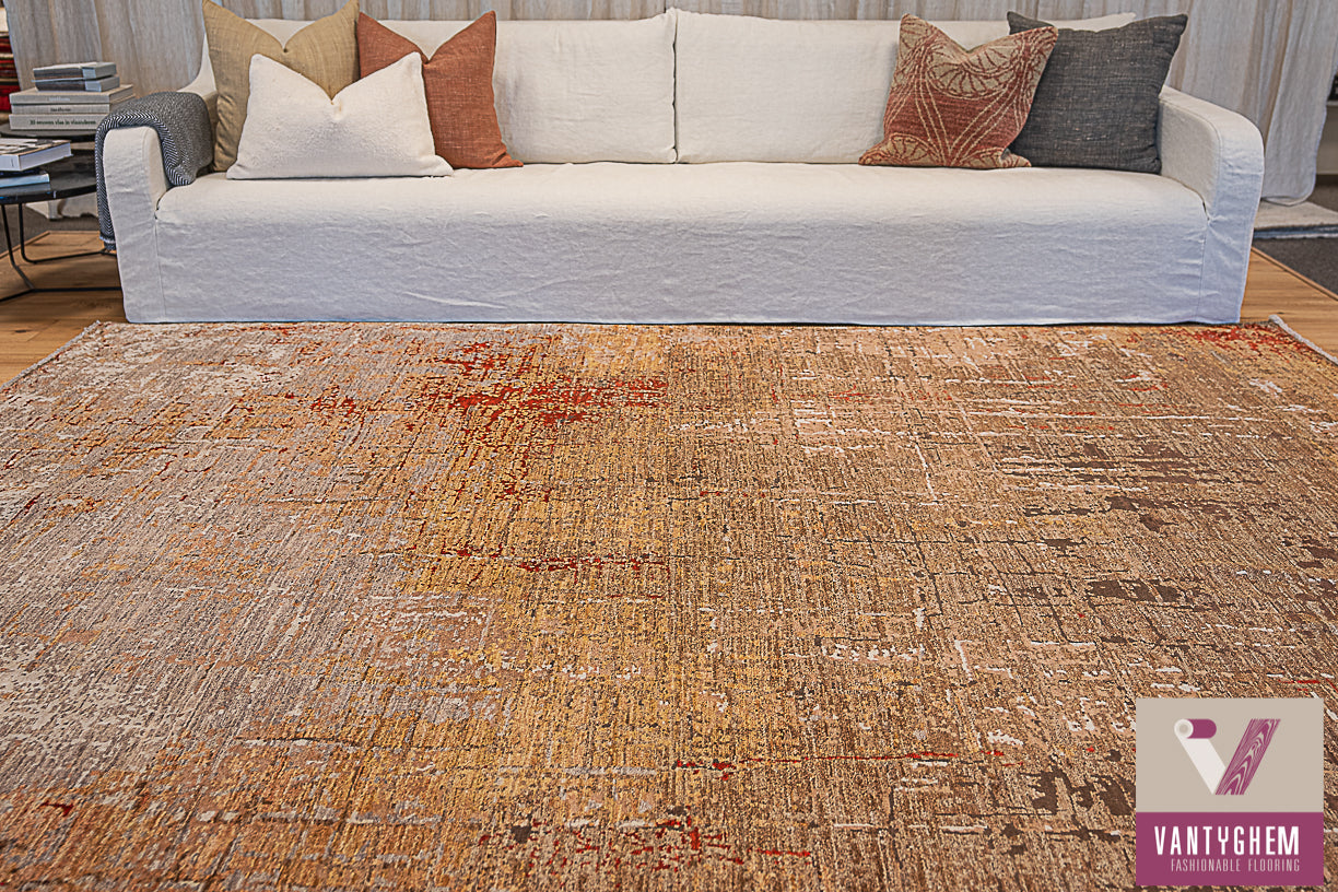 Handgeknoopt tapijt gemaakt van gajni wol en natuurlijke zijde.