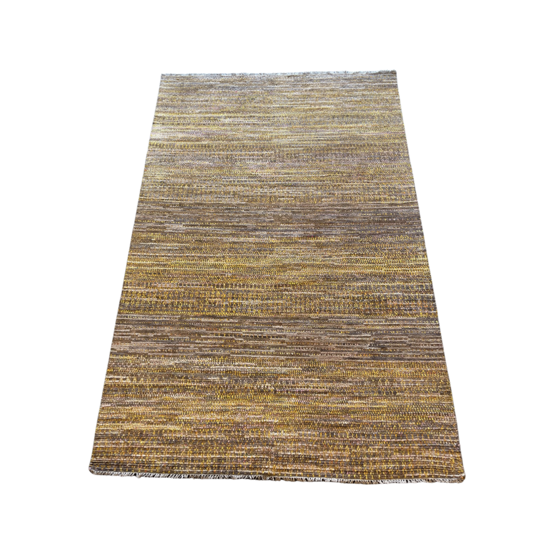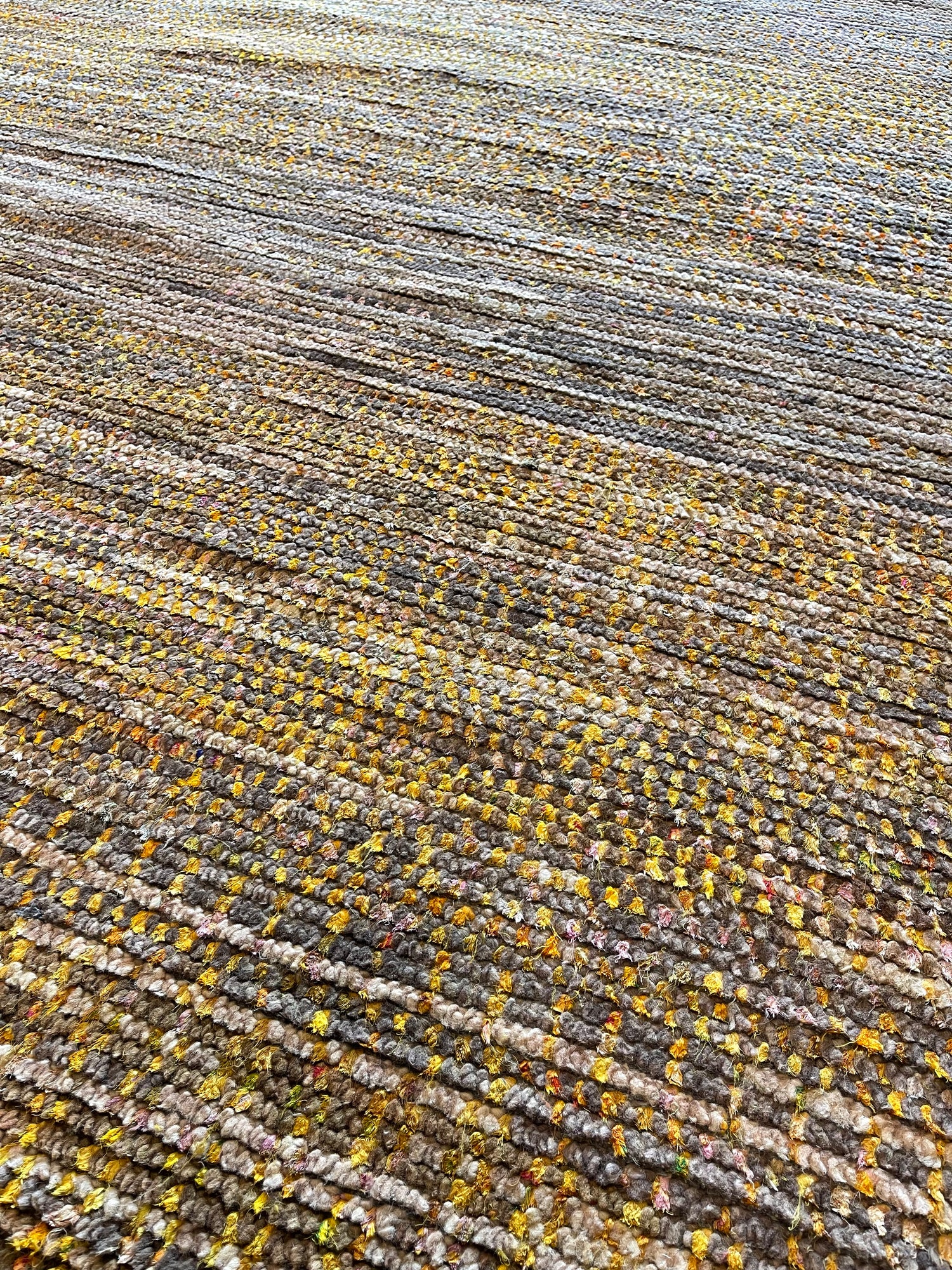 Handgeknoopt tapijt gemaakt van zuivere scheerwol en sari zijde. Sari zijde is gerecycleerde zijde van oude saris, de traditionele klederdracht van de Indische vrouwen.