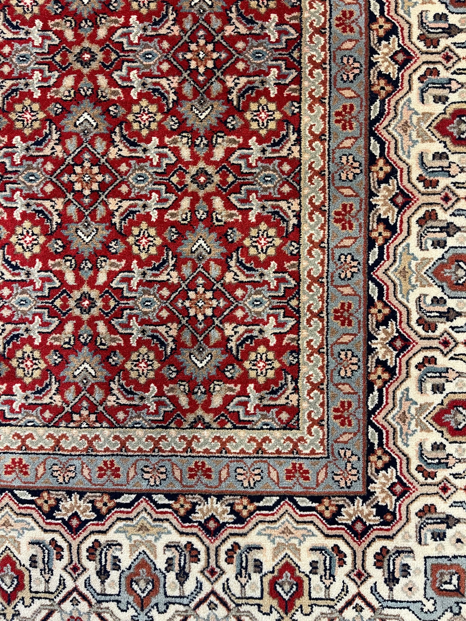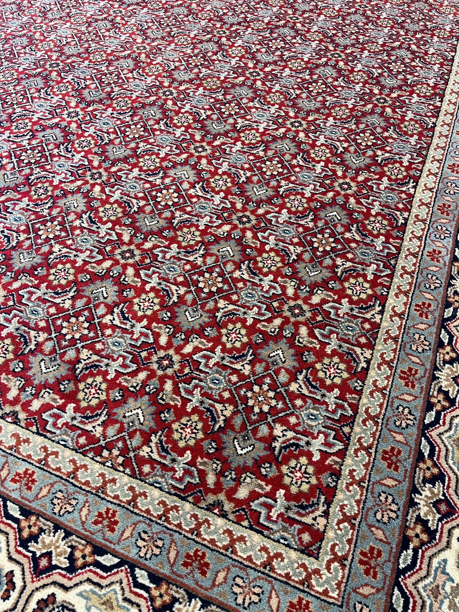 Handgeknoopt tapijt gemaakt van zuivere scheerwol.
