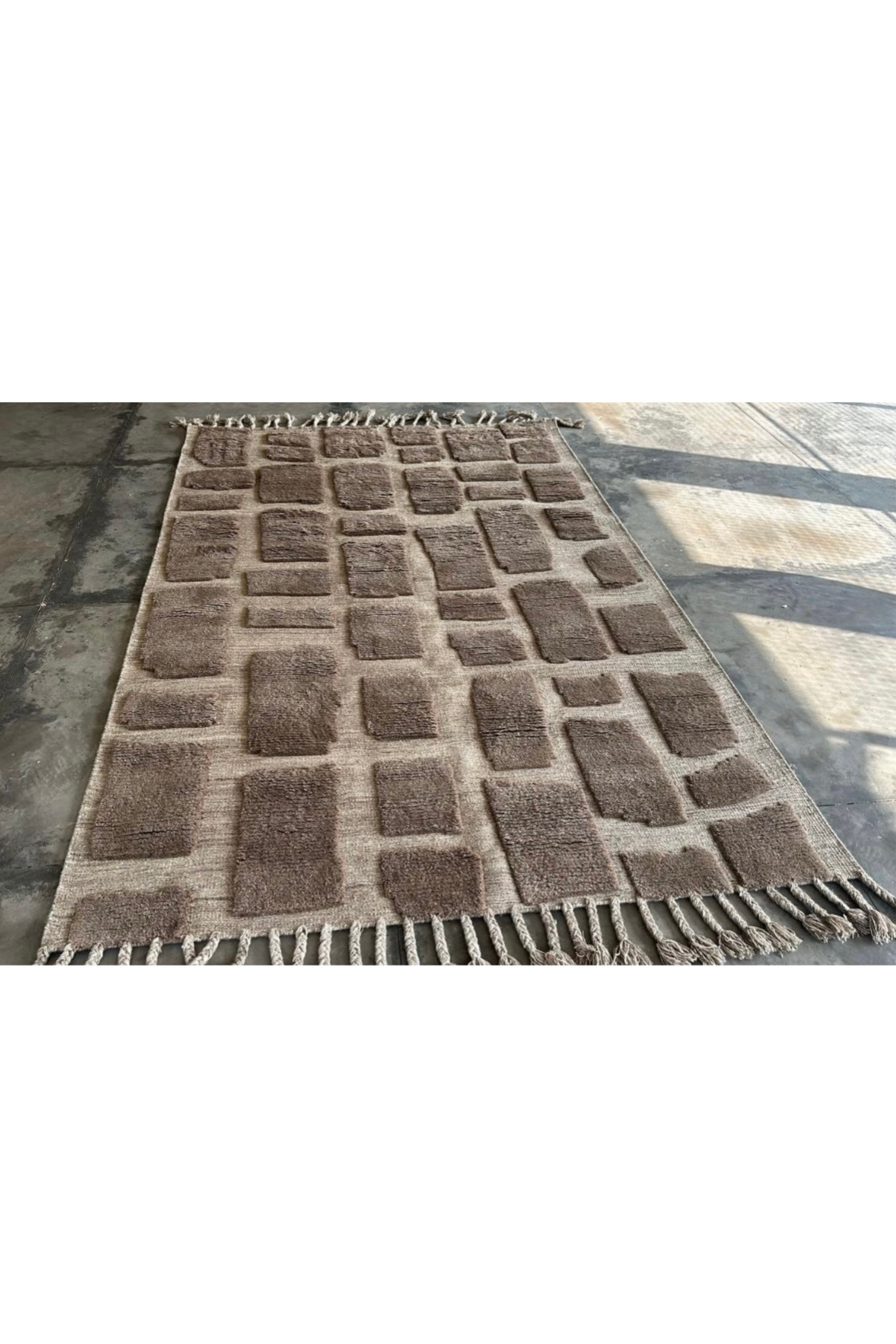 Handgeknoopt tapijt gemaakt van zuivere scheerwol met wollen franjes.
