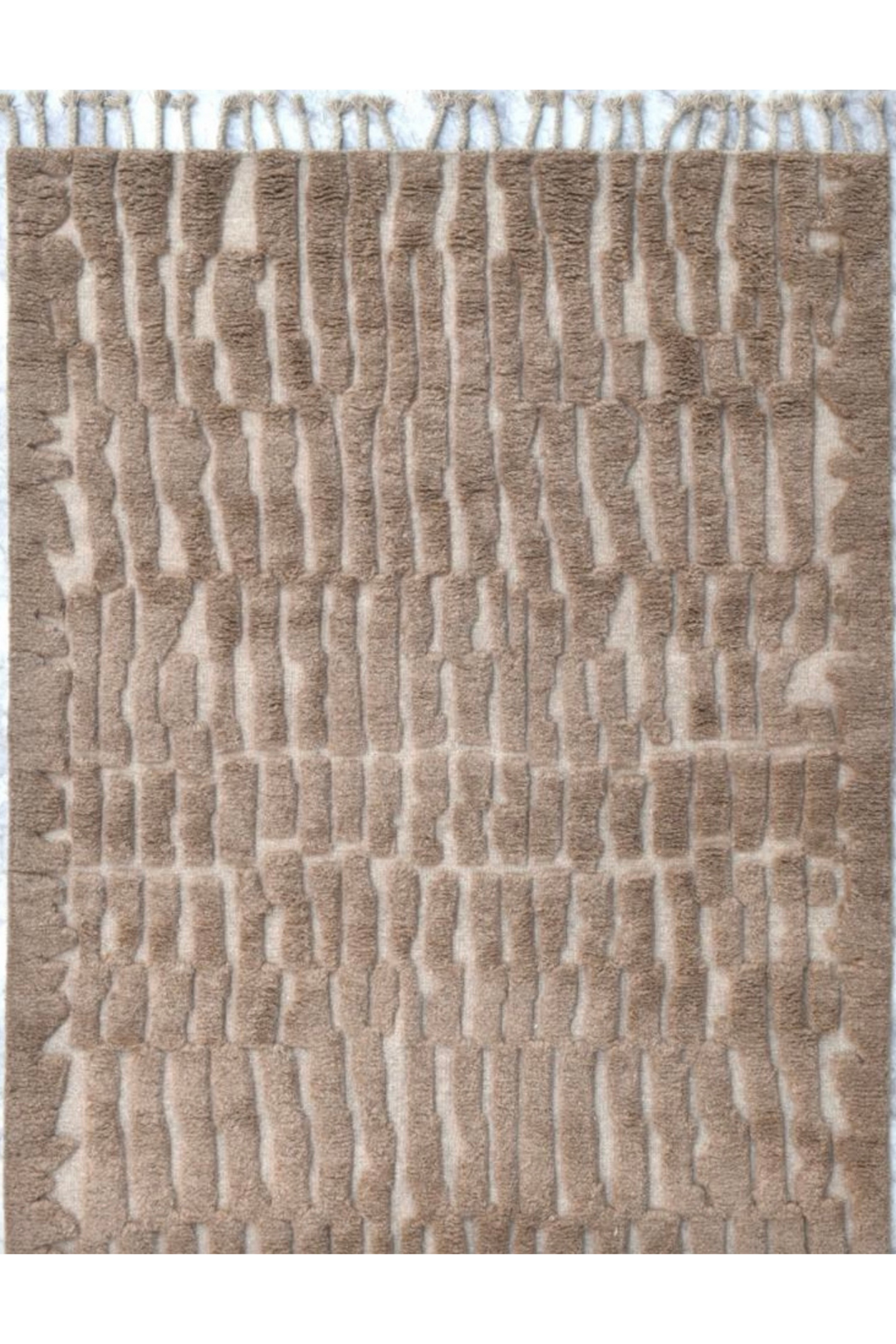 Handgeknoopt tapijt gemaakt van zuivere scheerwol met wollen franjes.