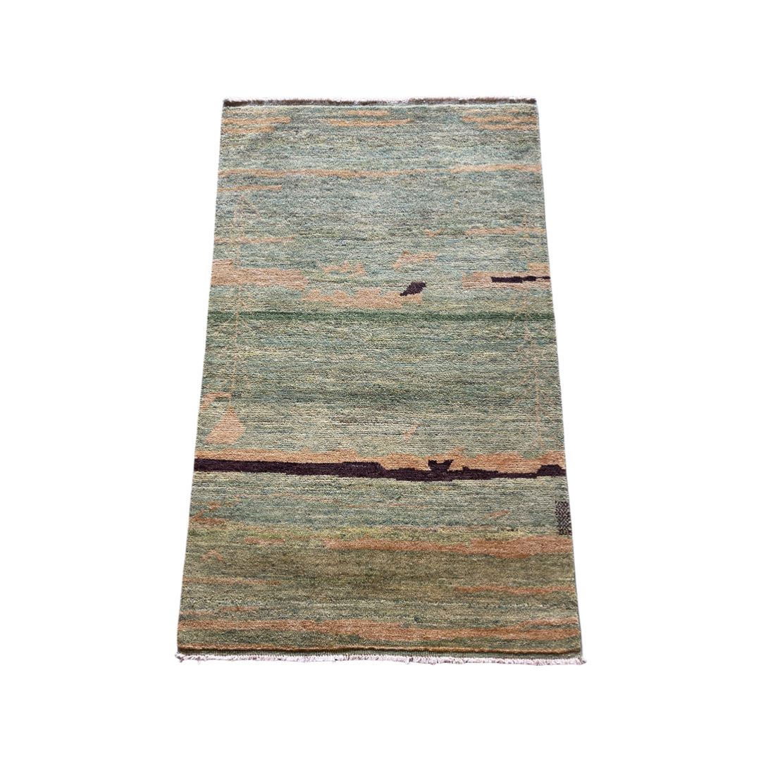 Handgeknoopt tapijt Chobi green