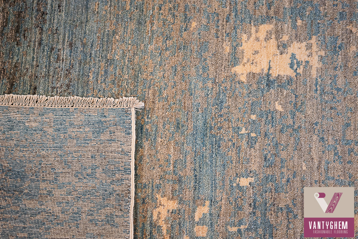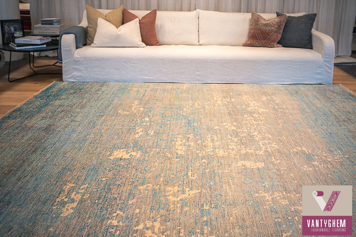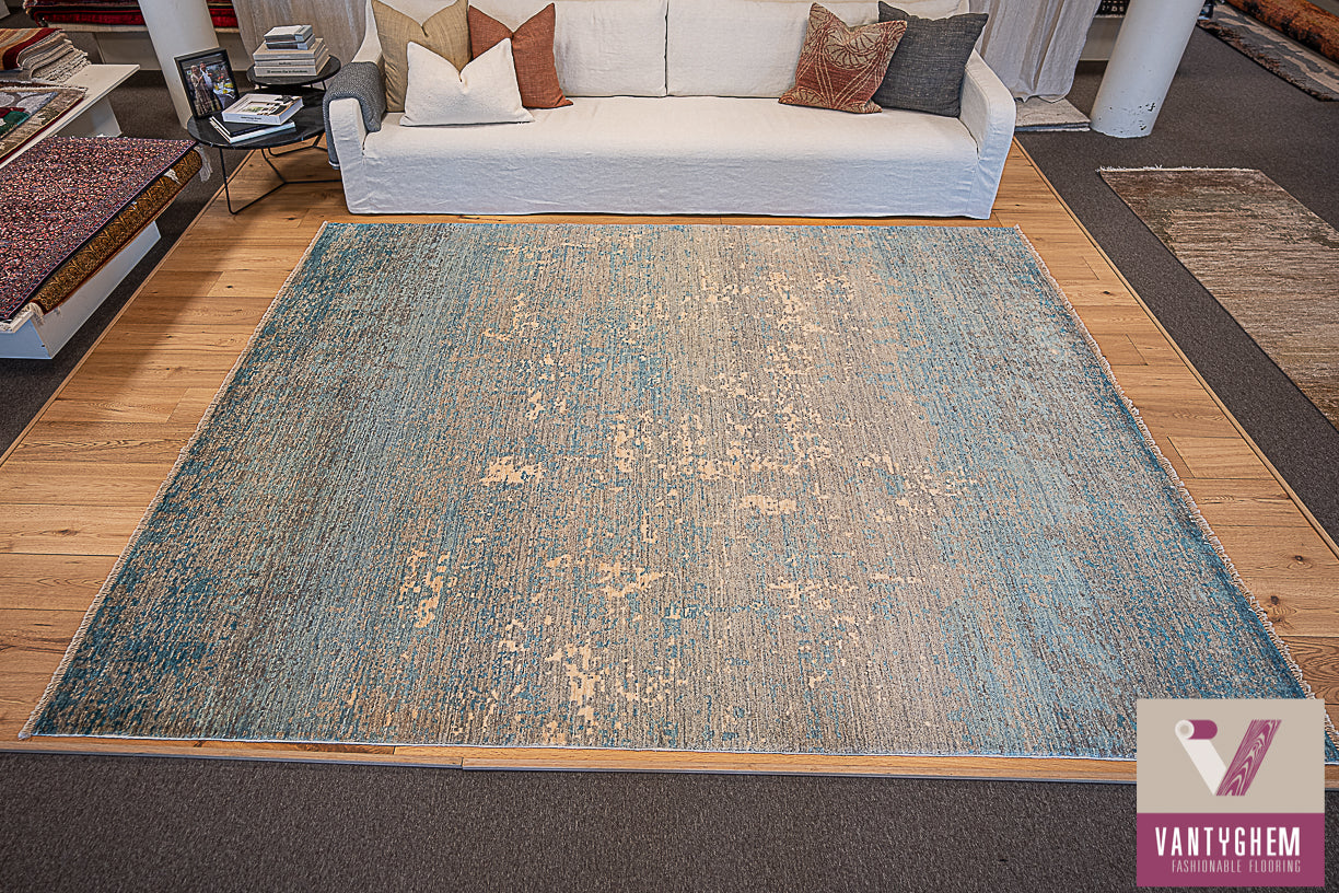 Handgeknoopt tapijt gemaakt van zuivere scheerwol en zijde.
