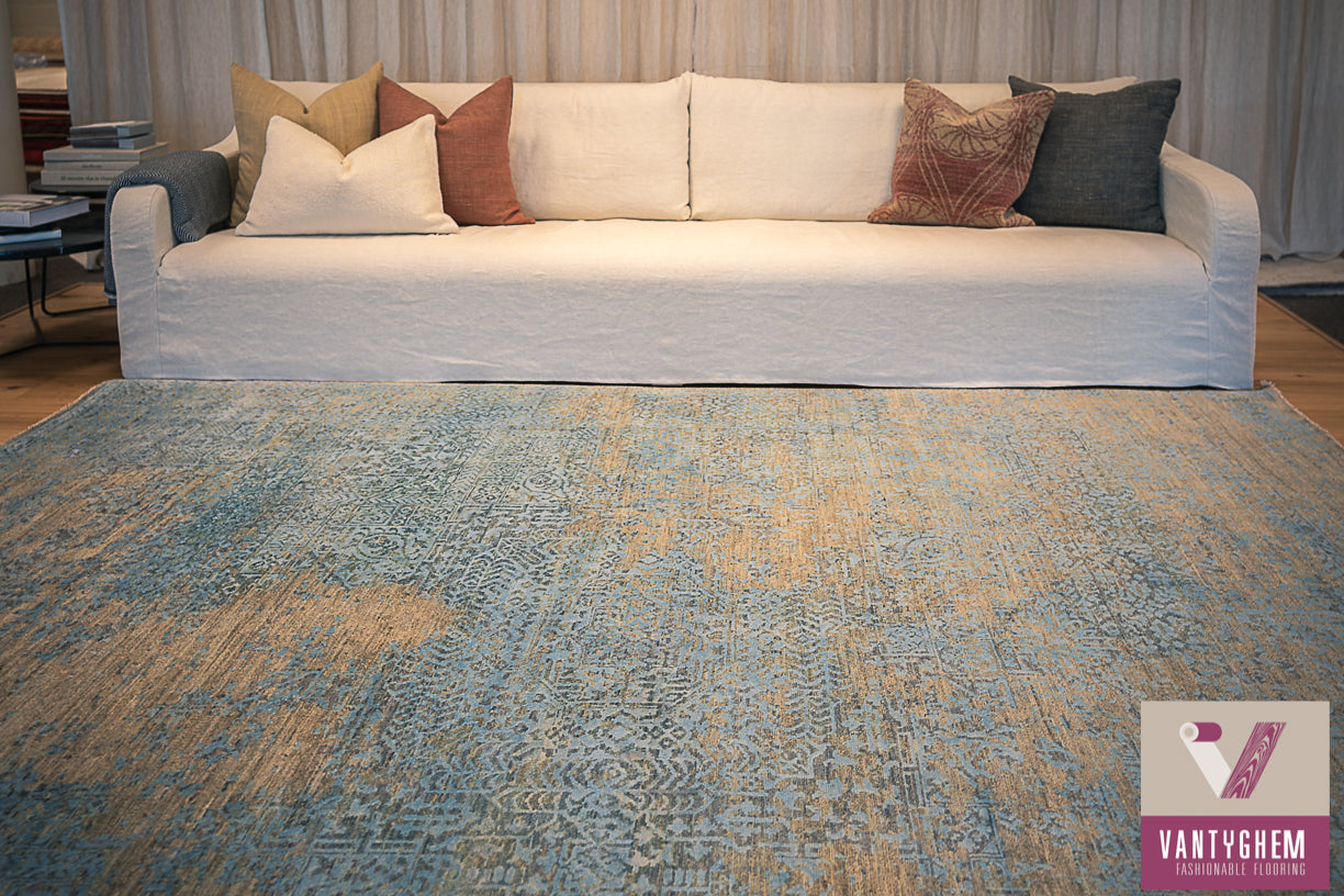 Handgeknoopt tapijt gemaakt van zuivere scheerwol en natuurlijke zijde.