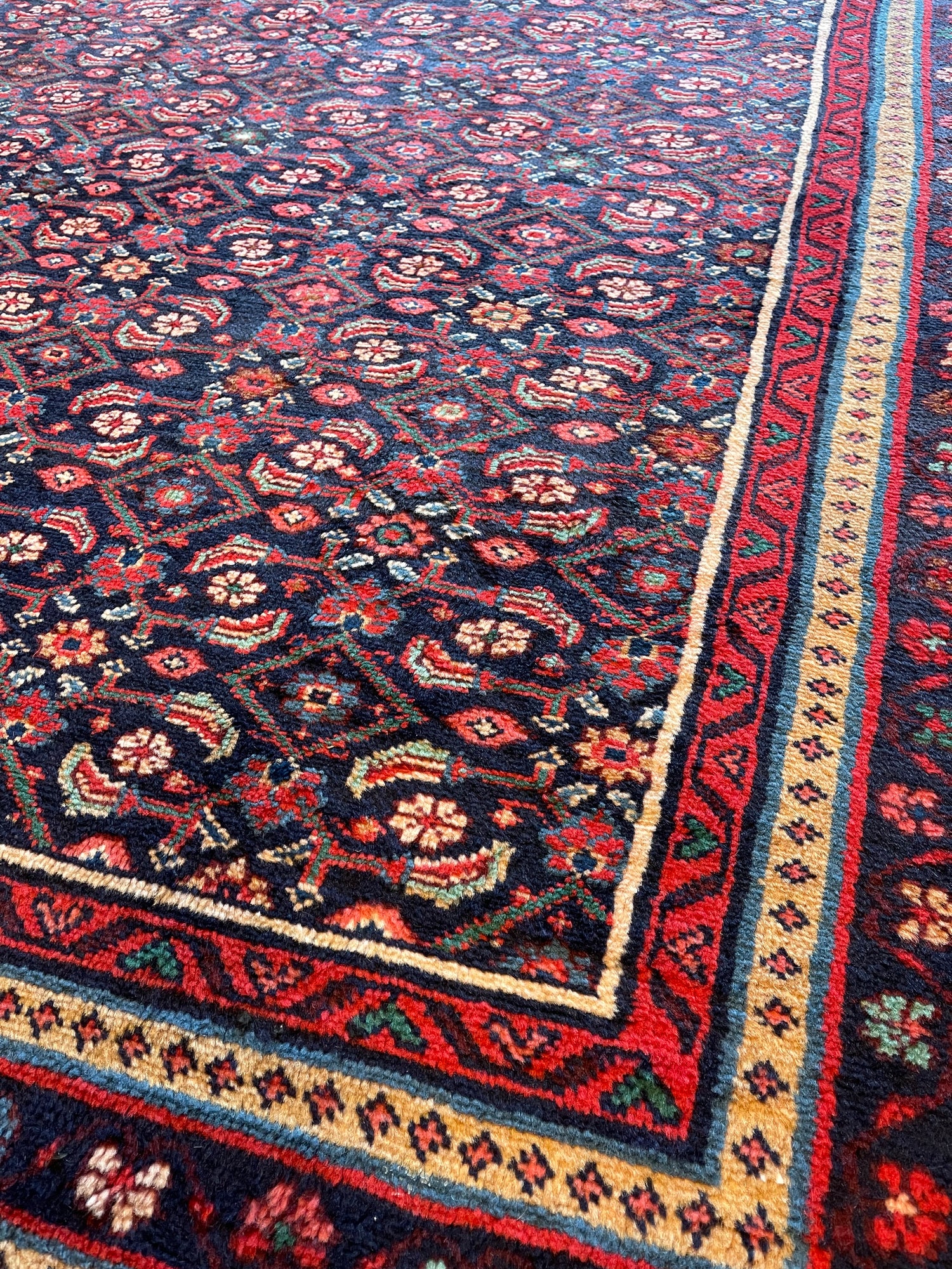Handgeknoopt tapijt gemaakt van zuivere scheerwol.