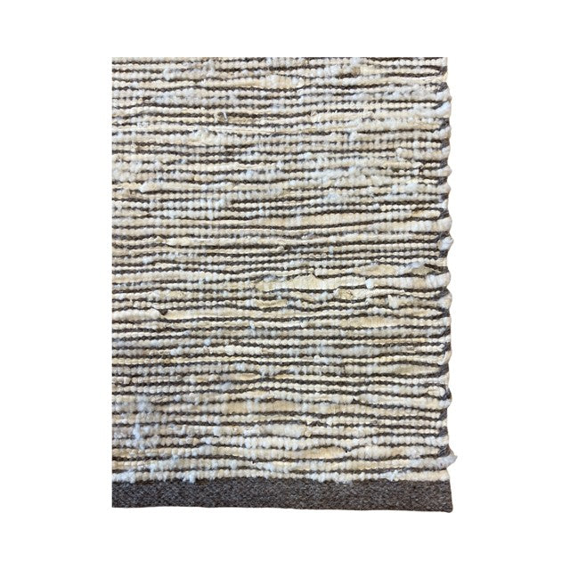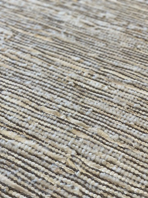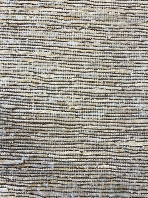 Tapijt gemaakt van reepjes koeleder en wol.